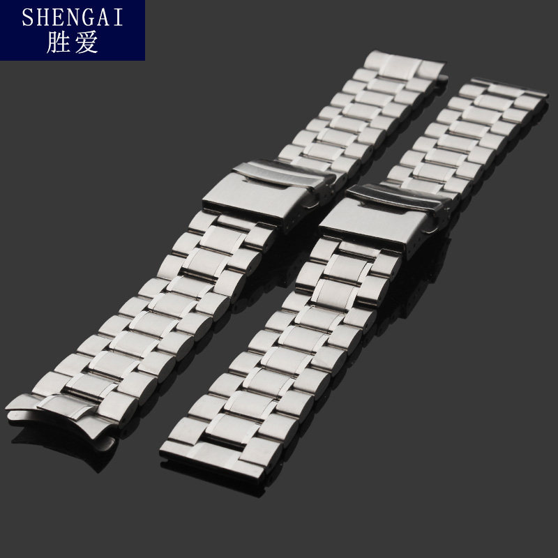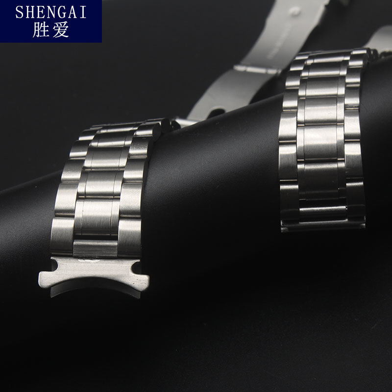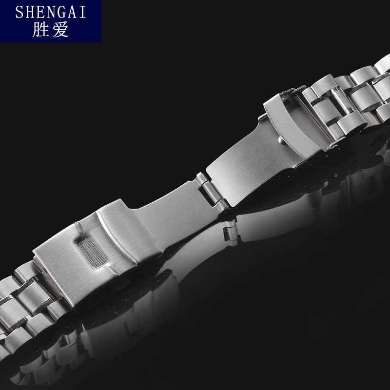 不锈钢实心钢带适配卡西欧西铁城精工钢表带双保险扣弧口表链配件