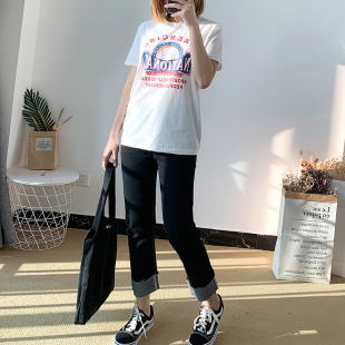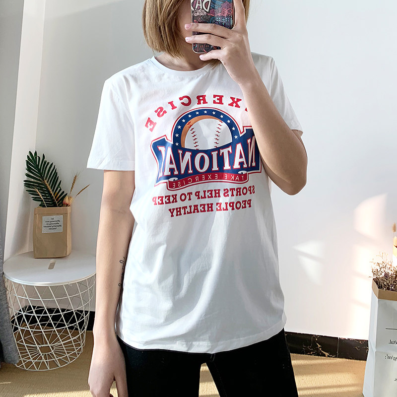 200斤大码 2021夏装 韩版 胖妹妹英文字母印花短袖 显瘦百搭T恤潮 新款