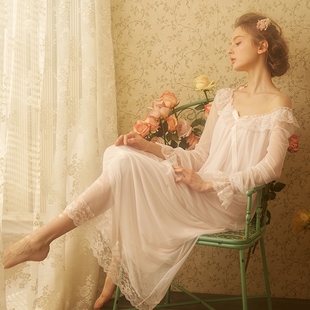 性感系带高级感浴袍睡裙公主睡衣 珊瑚绒长款 法式 蕾丝睡袍女秋冬季