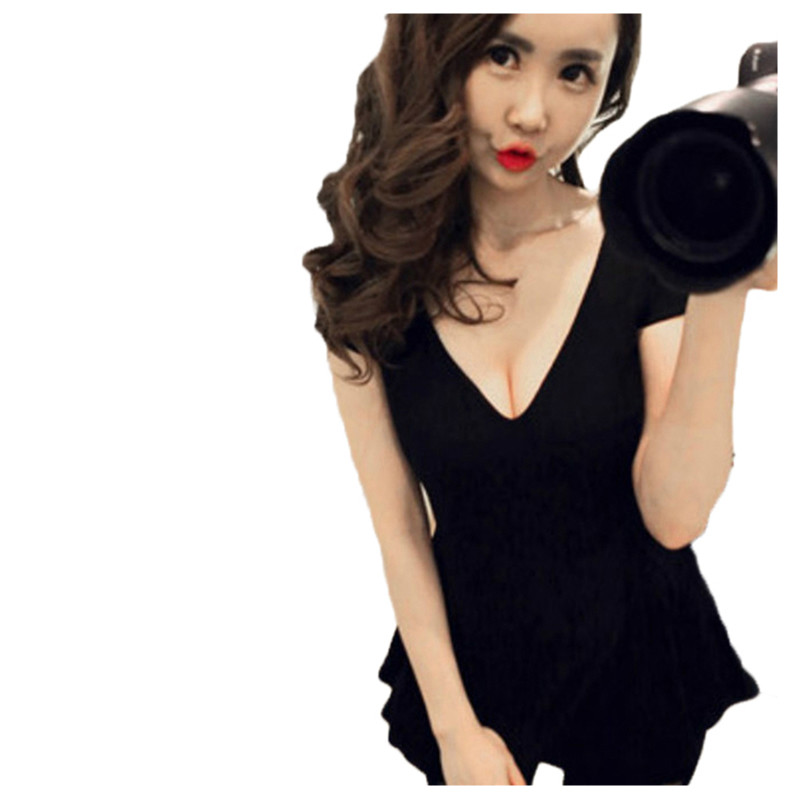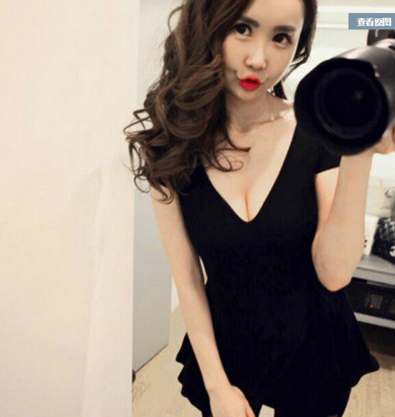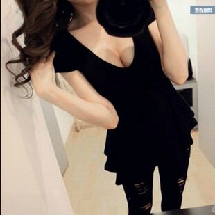新款 女装 莫代尔大V领性感露胸半袖 大码 荷叶边上衣T恤打底衫 夏季