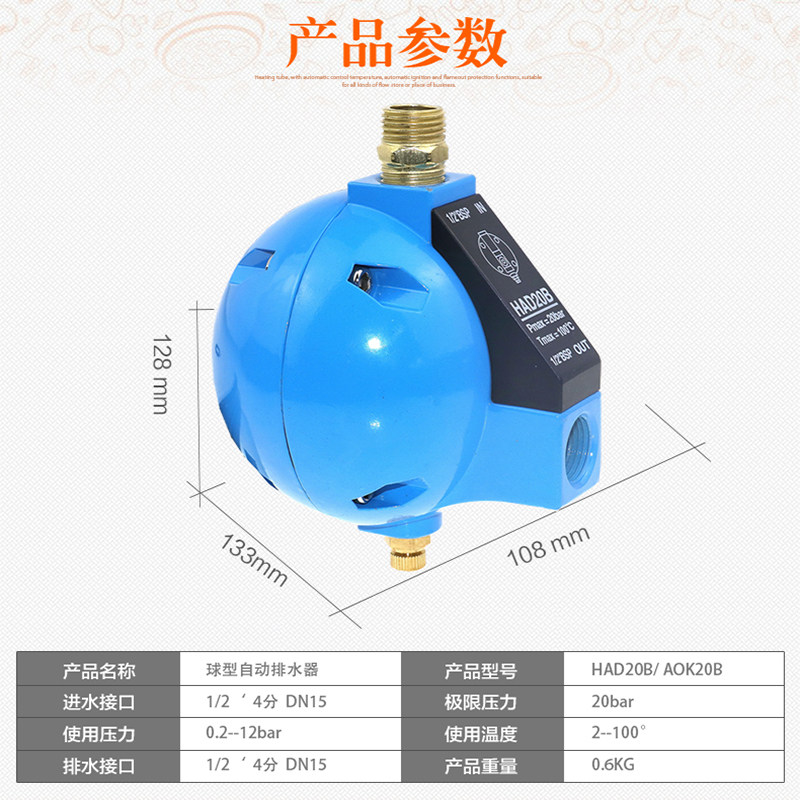 圆球排水器HAD20B自动排水器自动过滤器空压机AOK20B球形排水器