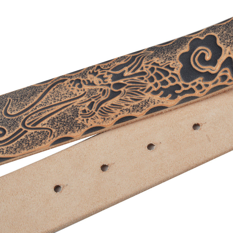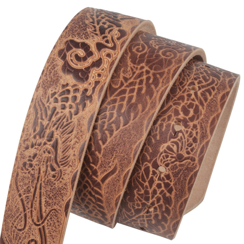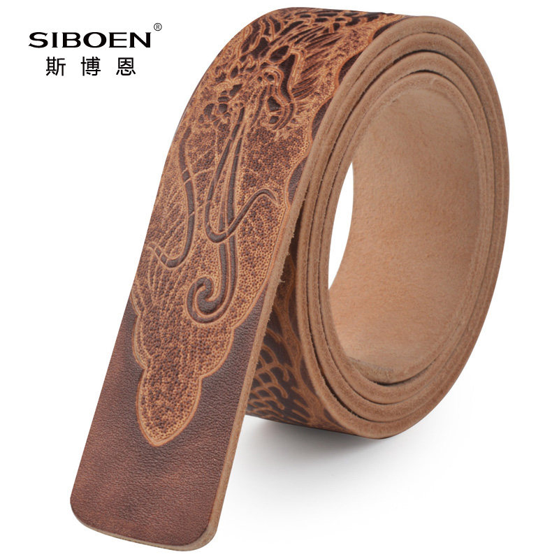 3.8cm 带身打孔无扣头3.4 皮带真皮平滑扣龙男士 腰带头层纯牛皮裤