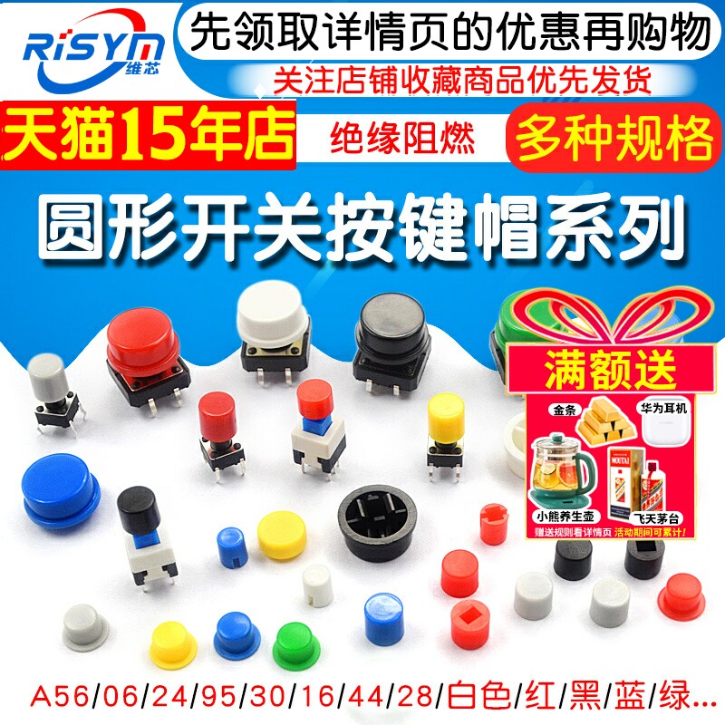 12X12X7.3 6开关按键帽自锁无锁按键5.8 A56圆形方形6