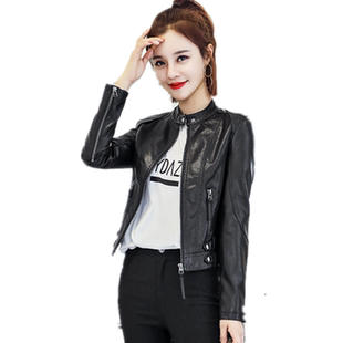 高级感短款 机车皮衣男女小众金属设计感黑色休闲翻领垫肩夹克外套