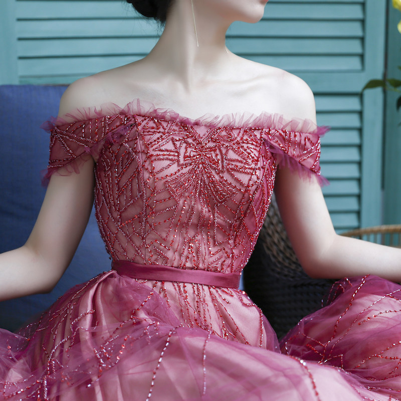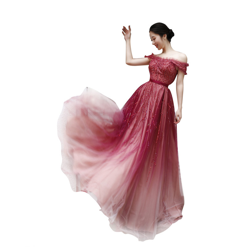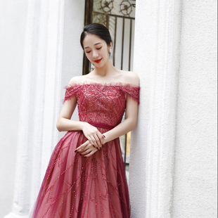 宴会晚礼服女2020新款 大红渐变色高贵大气敬酒服新娘礼服连衣裙