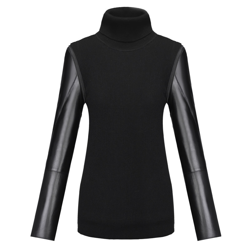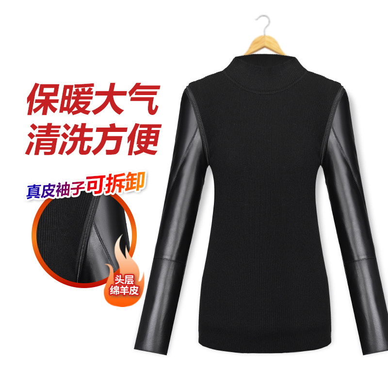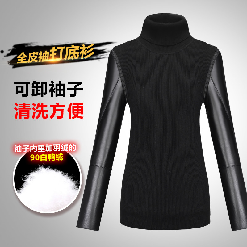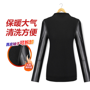 内搭马甲 女冬真皮加厚加绒保暖毛衣可脱卸羽绒袖 皮袖 打底衫