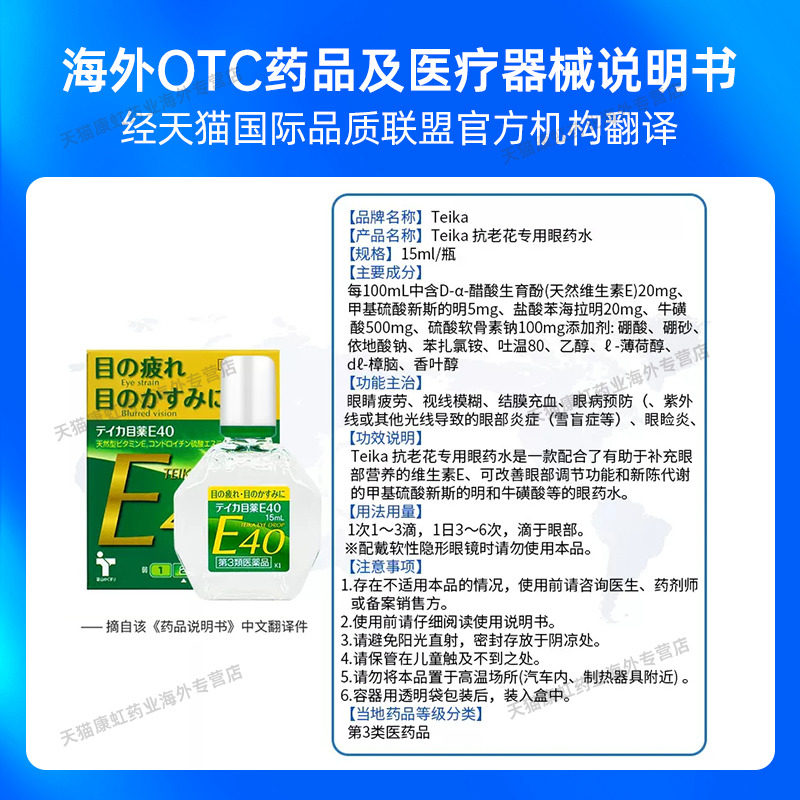日本teika老花眼专用滴眼液E40眼药水缓解视疲劳眼睛模糊老年人