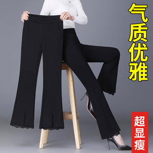 子小个子中年妈妈休闲九分微喇裤 秋冬加绒裤 女2025新款 开叉喇叭裤