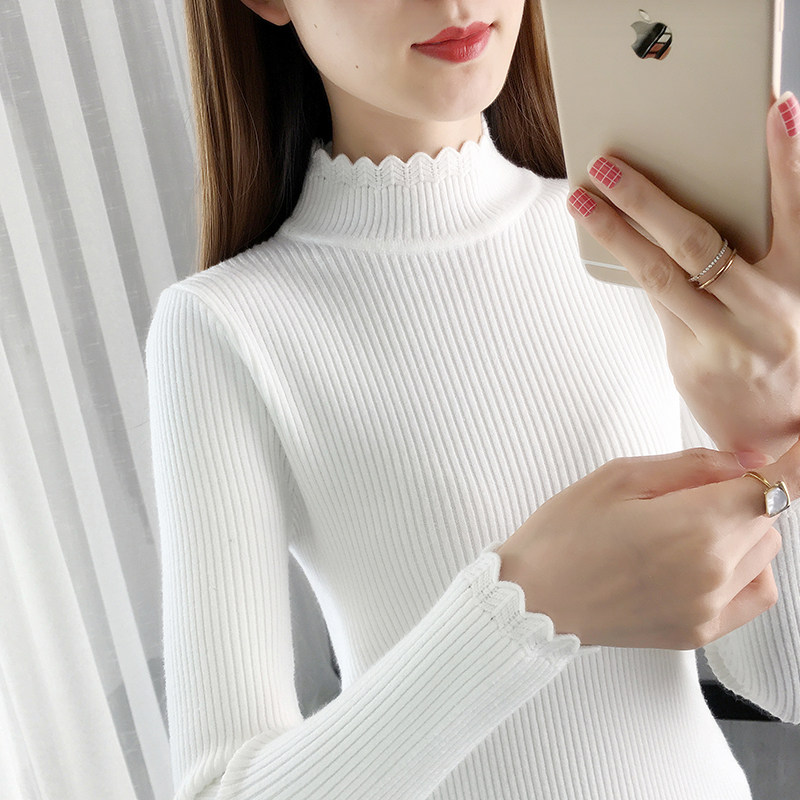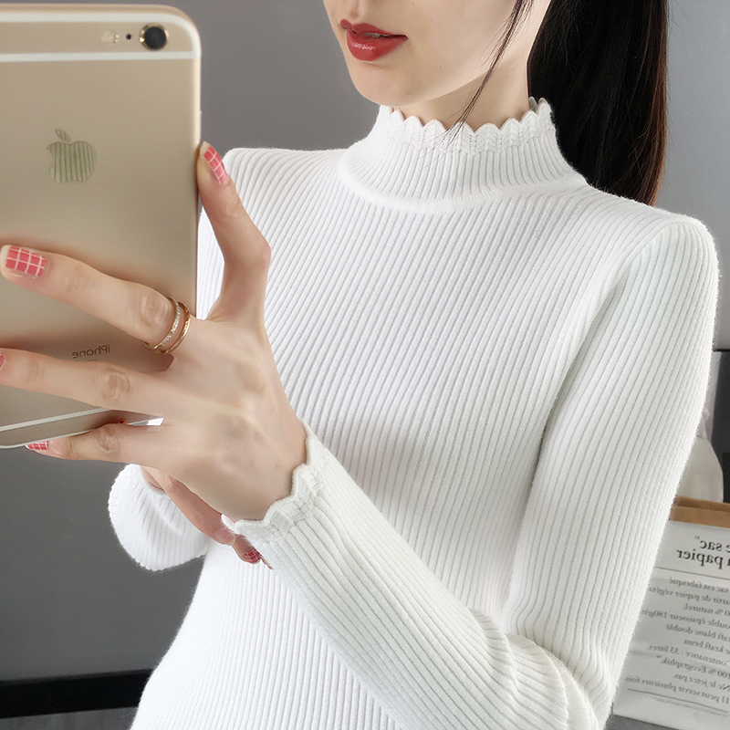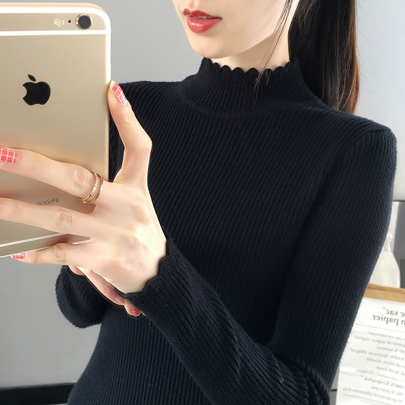 女2025春秋新款 上衣短款 修身 长袖 半高领毛衣 紧身针织衫 黑色打底衫