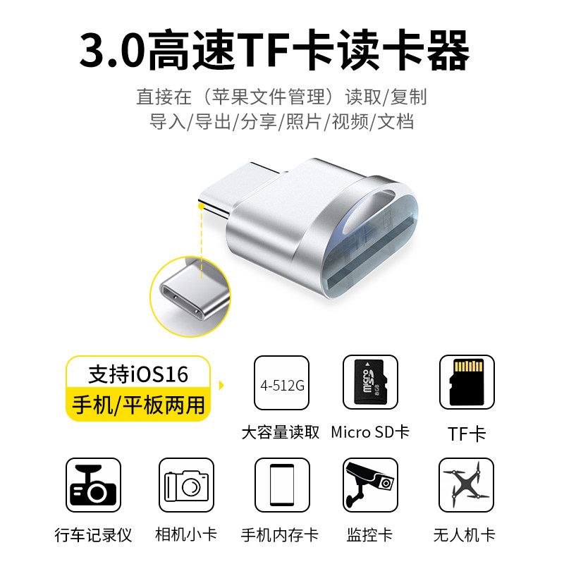 16储存micro 读卡器usb3.0高速tf行车记录仪iphone17苹果手机ipad平板otg扩展8 sd手机内存卡17
