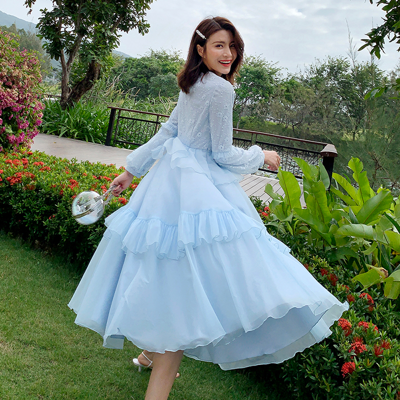 公主轻熟蕾丝荷叶a字长裙连衣女装 美妃2023春夏新款 仙女超仙法式