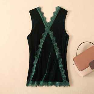 大码 内搭小衫 女 丝绒秋冬西装 复古金丝绒蕾丝V领打底吊带背心无袖