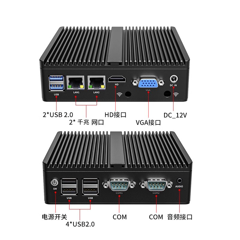 4005U嵌入式 倍控迷你电脑n100 j6412I3 J1900 工控机minipc小主机双网双串口工业酷睿I5双核四核centos N2840