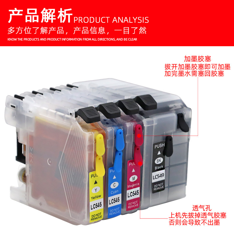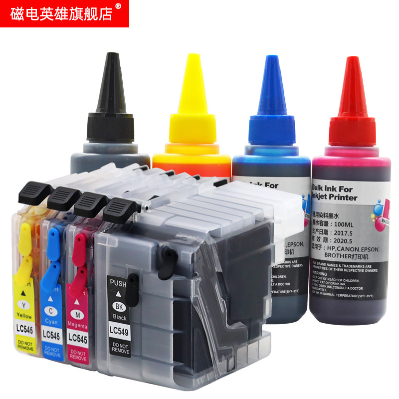 J3520彩色喷墨打印机填充墨盒LC599XL J3720 BK黑色LC595XL Y彩色连供墨水盒 磁电英雄适用兄弟MFC J2720