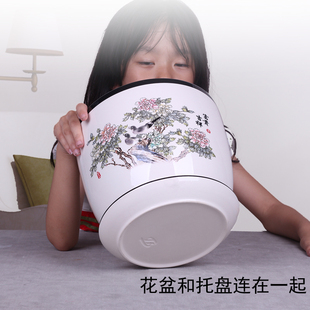 中国风花盆陶瓷带托盘 绿植创意室内阳台多肉植物盆栽 特大号个性