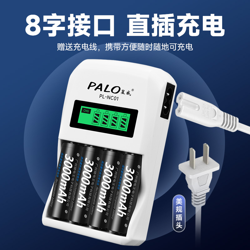 5号充电电池套装 3000毫安大容量液晶快充五号七号可充7号电池智能通用充电器