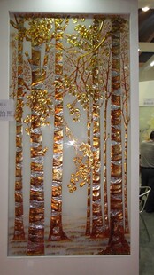 财富森林 过道背景玻璃 贴金箔玻璃玄关 上海艺术玻璃背景墙