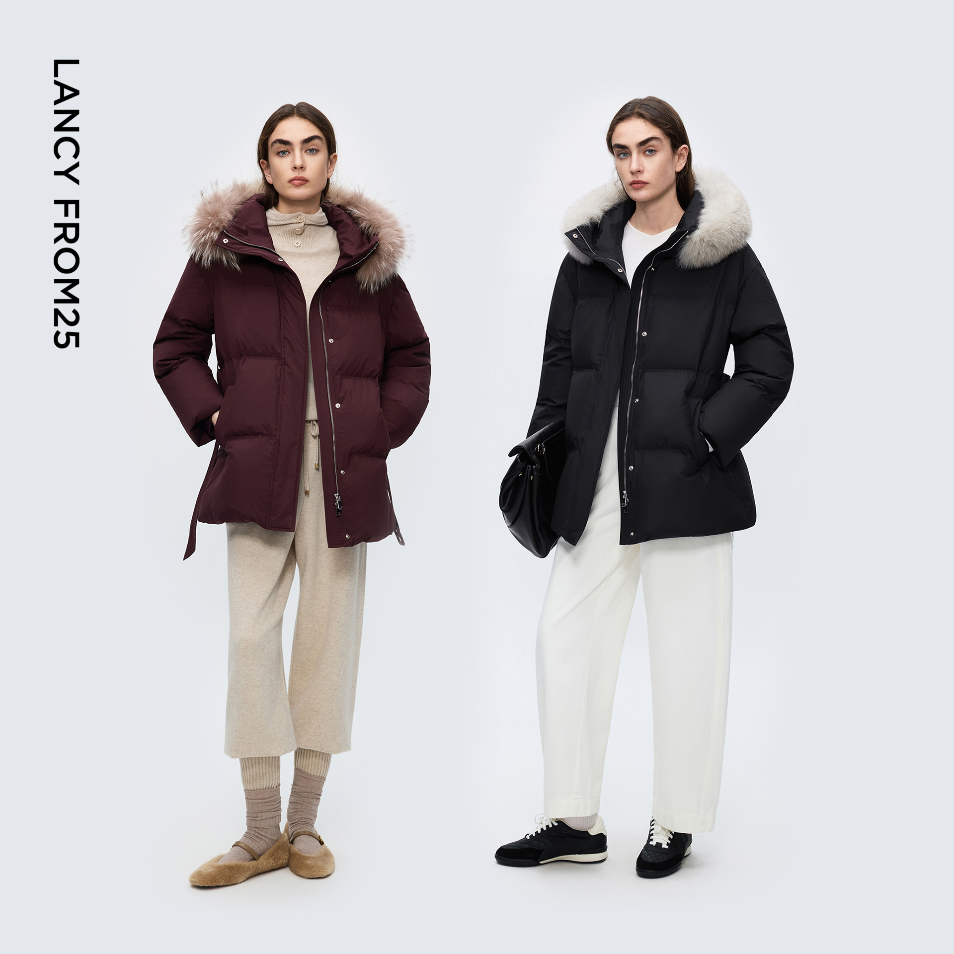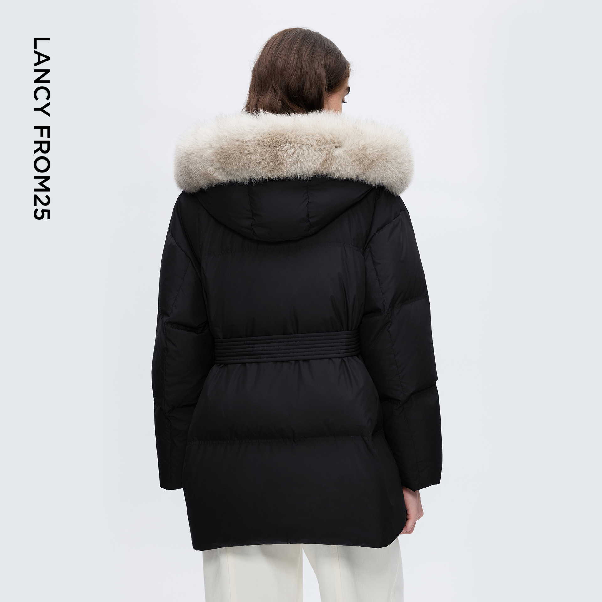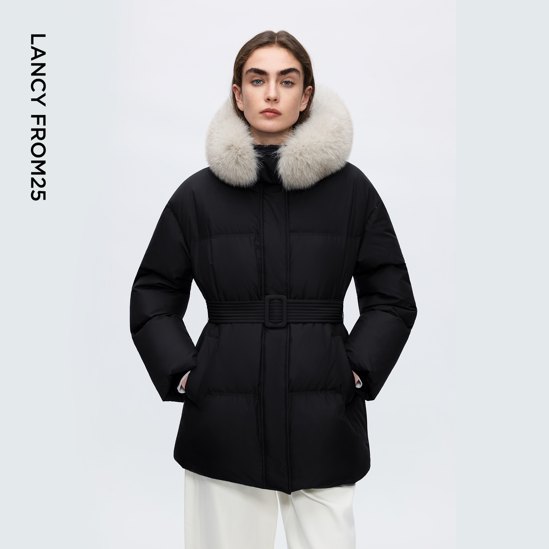 朗姿霍尔多巴吉鹅绒羽绒服毛领修时尚 通勤百搭外套2025