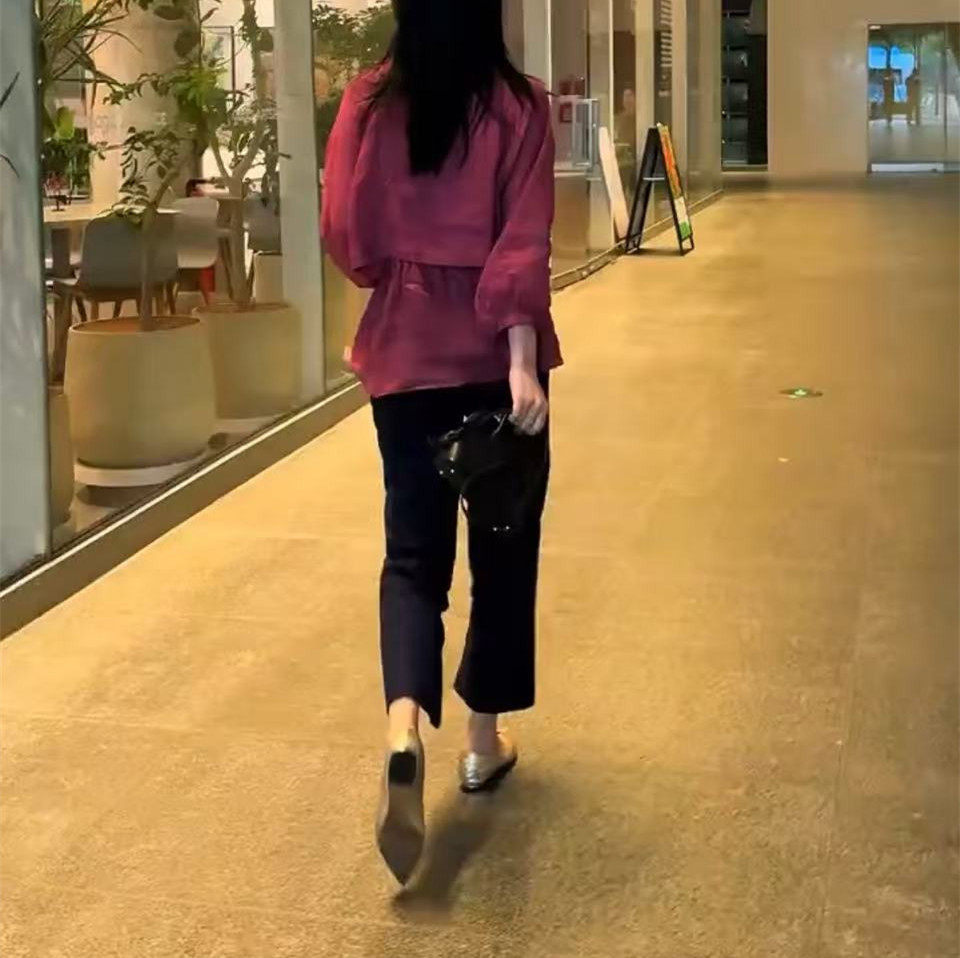 洋气显瘦 简约九分裤 日系cherrykoko新款 小个子收腰防晒衬衫