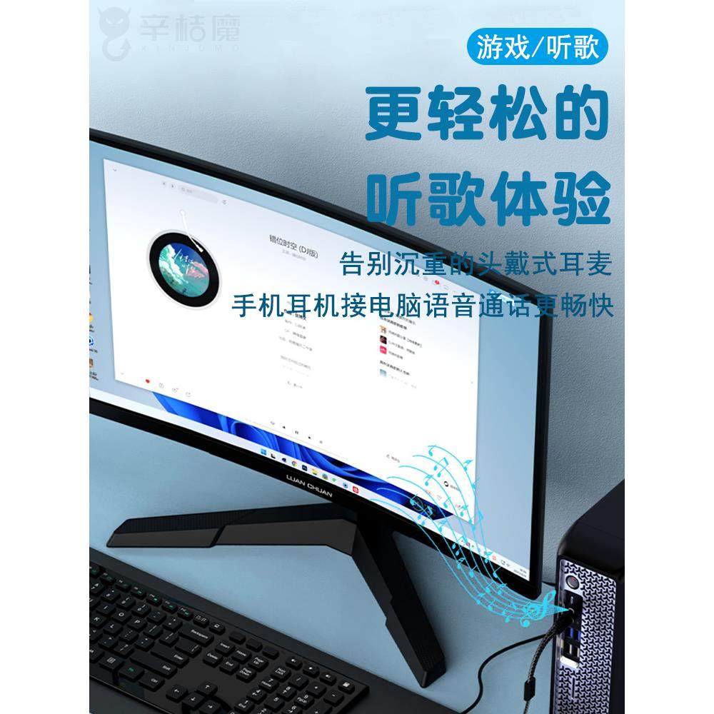 电脑耳机转接头线手机耳麦分线器音频麦克风二合一转换头一分二台式 电脑笔记本3.5mm接口圆孔接耳塞A1843