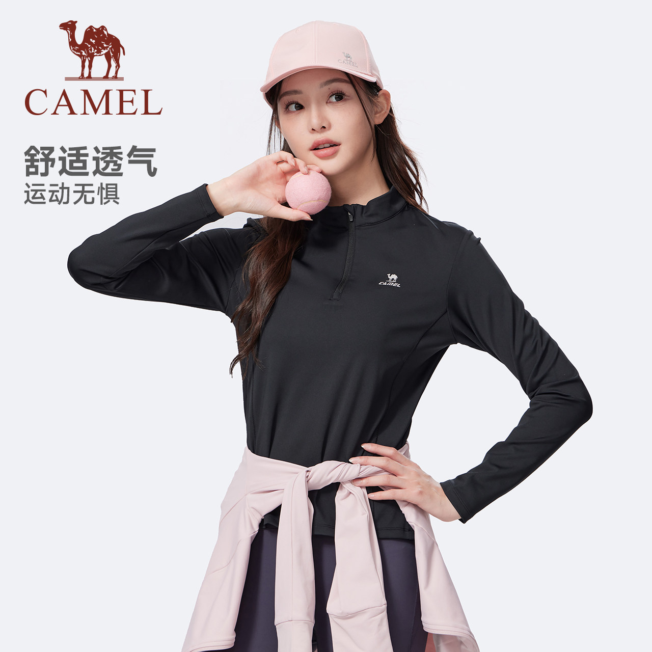 T恤训练服跑步健身上衣男 立领长袖 骆驼运动速干衣女2025秋季 新款