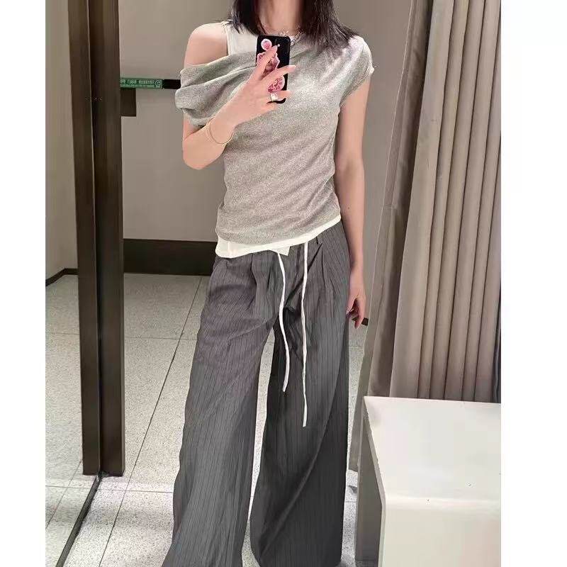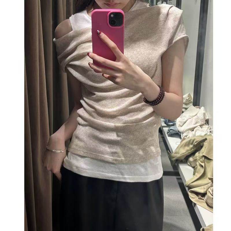 T恤假两件 2025夏季 双层不对称设计圆领背心无袖 女装 5644213 新款