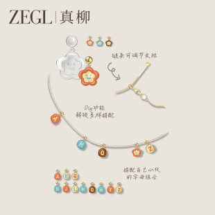 ZEGL小方豆明星同款 字母项链女配饰笑脸多巴胺吊坠锁骨链可爱颈链