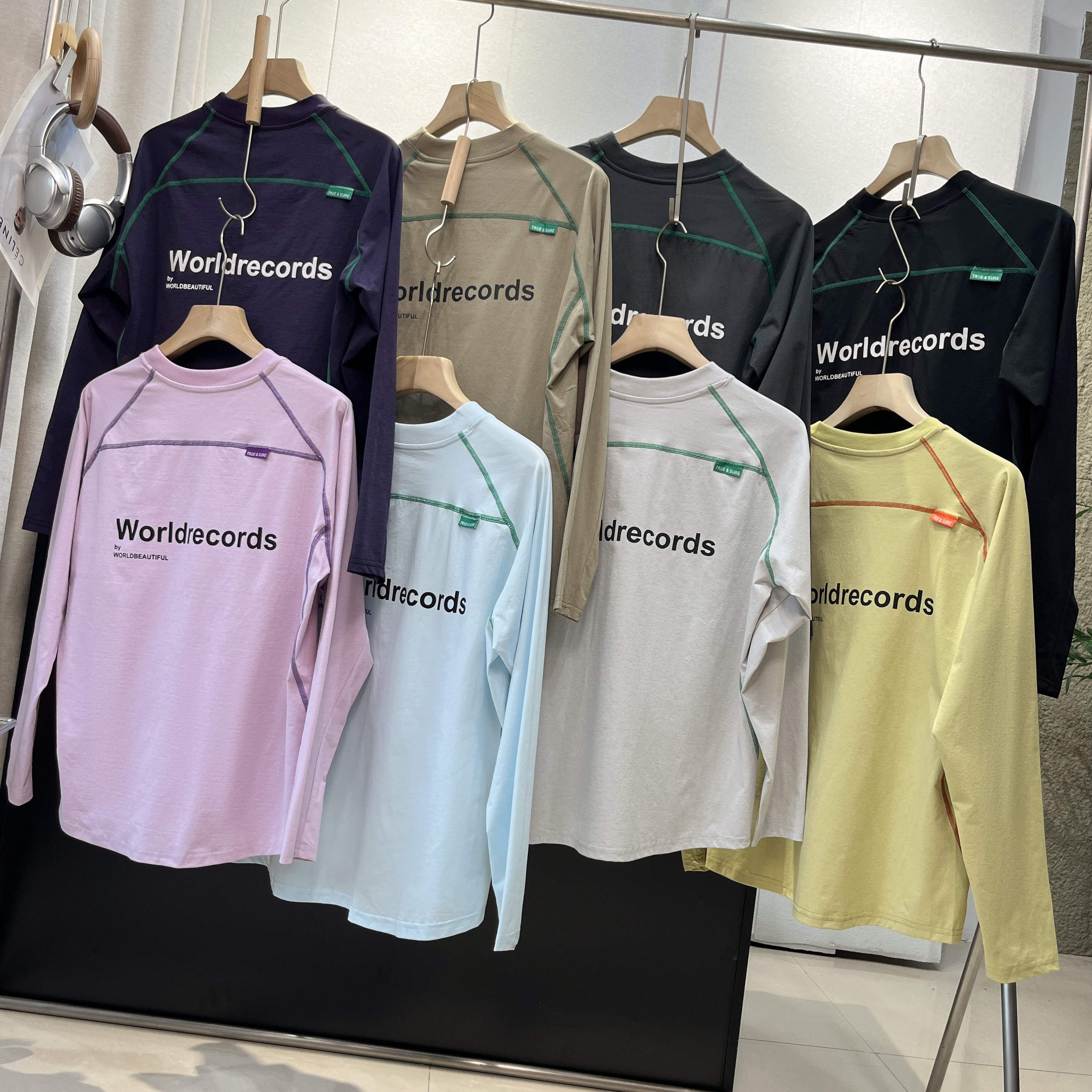 运动T恤 户外机能速干吸湿透气字母印花长袖 大厂订单 男女情侣款