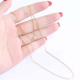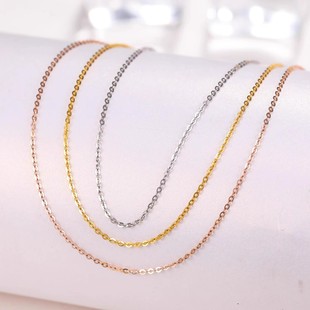 正品 AU750钢印18k金项链女白金k金水波纹黄金足金链细素金O字链