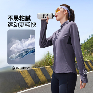 迪卡侬运动速干衣女长袖 T恤春秋冬半拉链上衣户外t恤健身登山SAL4