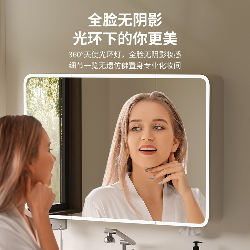 法式 奶油风陶瓷一体智能浴室柜镜柜组合卫生间收纳洗漱台洗脸盆