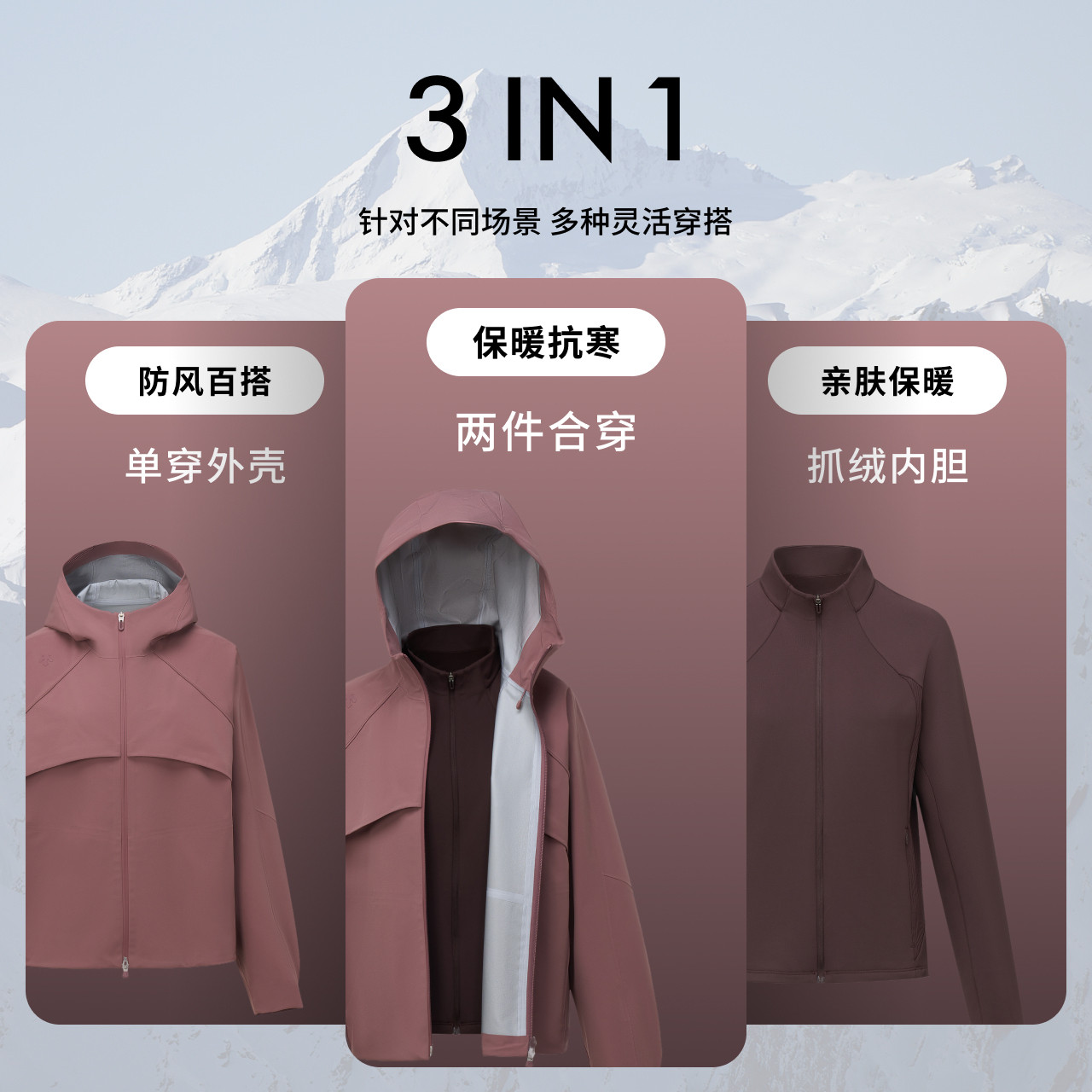 DESCENTE迪桑特防水透湿保暖女士抓绒内胆三合一上衣两件套