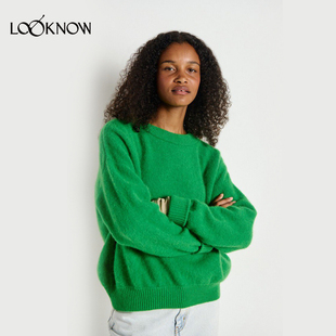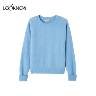 圆领套头纯色宽松百搭打底针织衫 FF5965外贸欧美单女装 毛衣新款