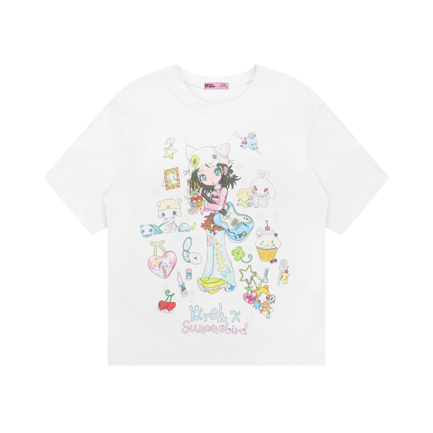 韩版 REOY 夏季 鸟鸟一联名甜美插画设计感短袖 廓形宽松T恤 Stu