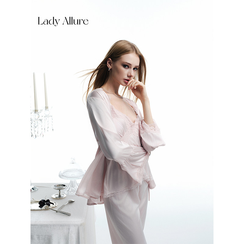 轻奢性感纯欲缎面吊带睡衣家居服套装 「LA」雾野玫瑰 静感系列
