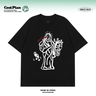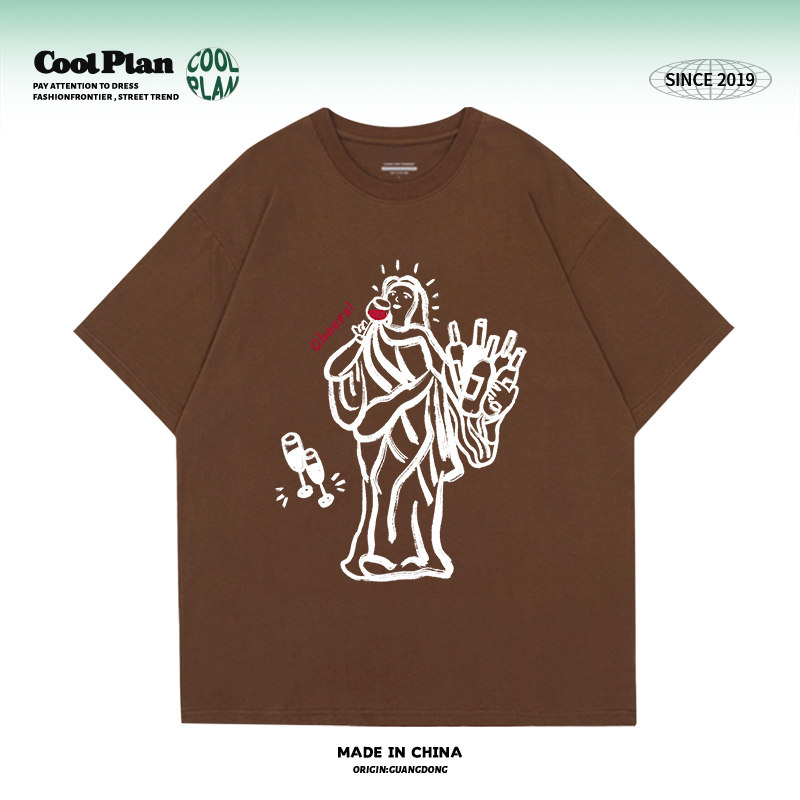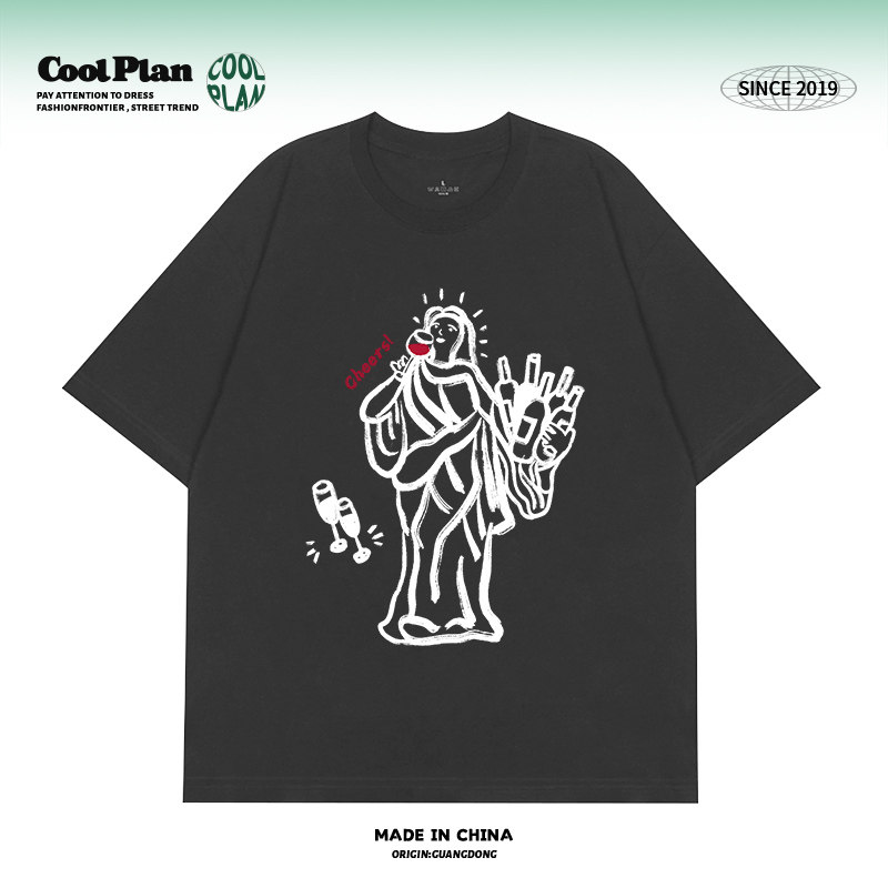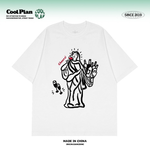 风 潮牌情侣款 微醺自由女神 设计感休闲短袖 上衣男女 夏季 美式