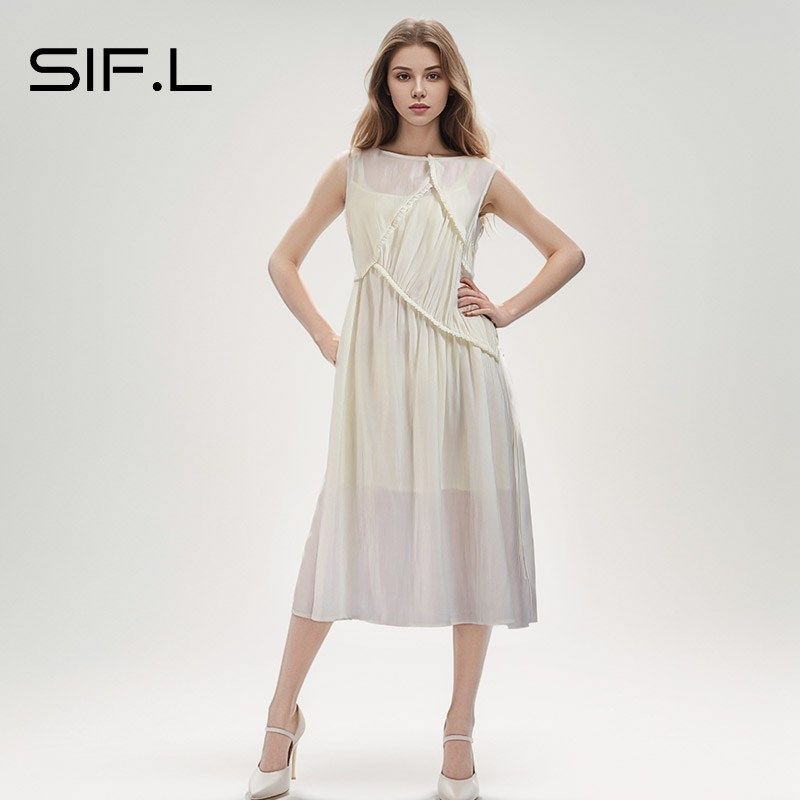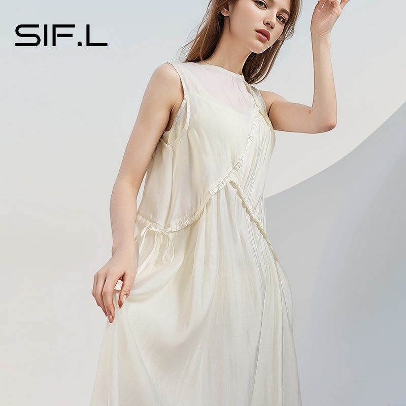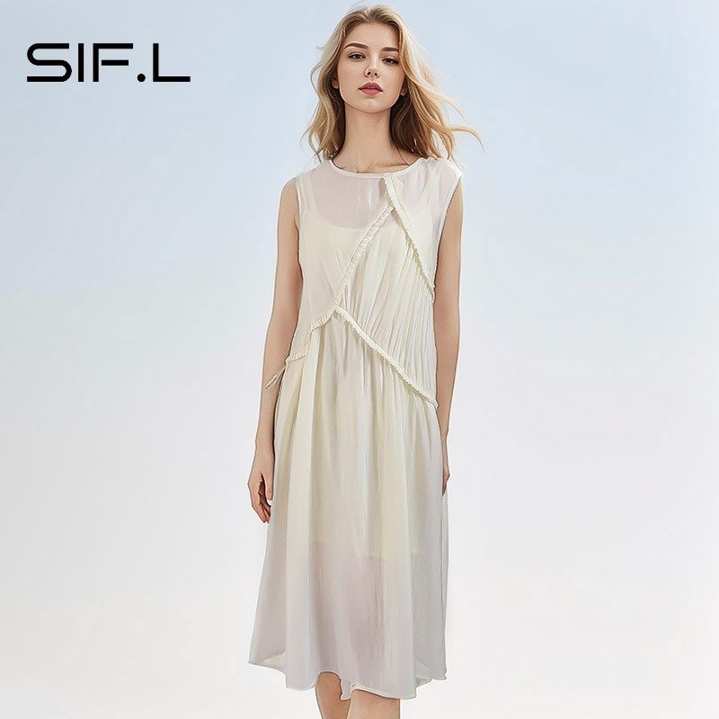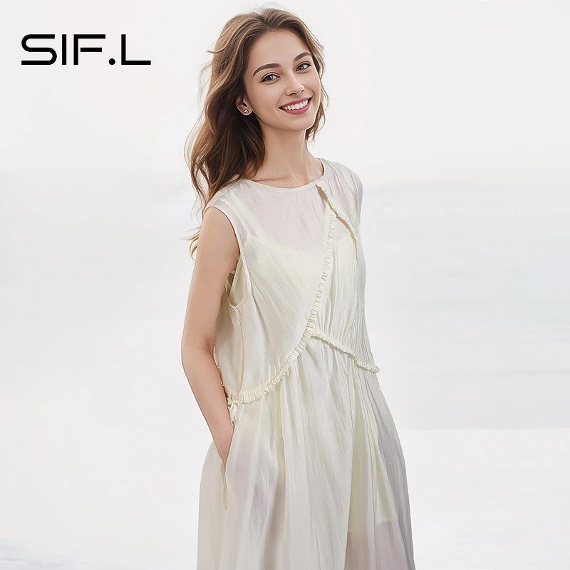 法式 米白色无袖 吊带背心连衣裙女宽 夏高级感m2024新款 两件套裙装