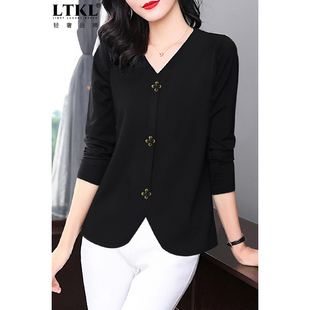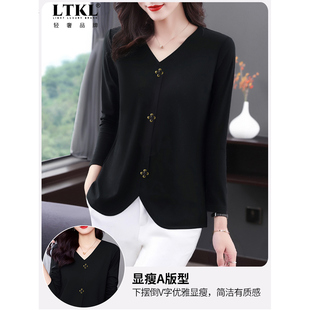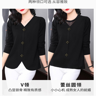 2025春秋新款 大码 打底衫 t恤女装 中年妈妈洋气宽松女士v领上衣 长袖