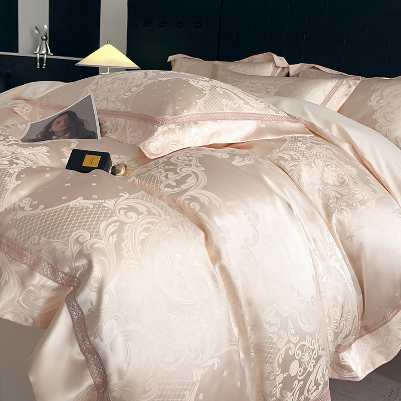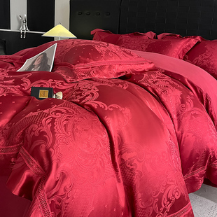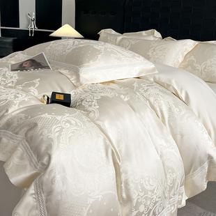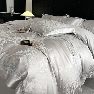 高级A类160支贡缎提花四件套轻奢全棉被罩套床笠纯棉超柔裸睡床品