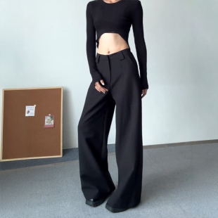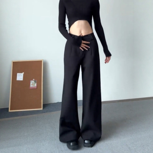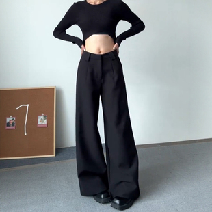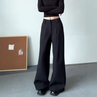 春宽松显瘦垂感高级感直筒休闲长裤 黑色阔腿西装 女装 子胖mm大码 裤