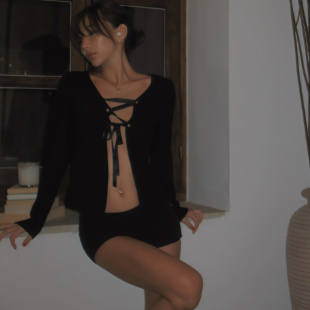 chic开衫 羊绒混纺真丝抽绳极简柔软geek 杏仁百利甜 Adorn