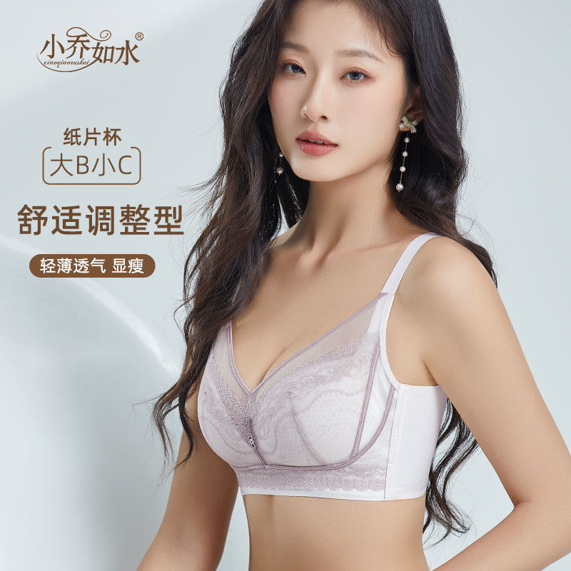 小乔如水1602纸片杯内衣薄款 透气蕾丝性感调整型大胸显瘦无磁文胸