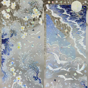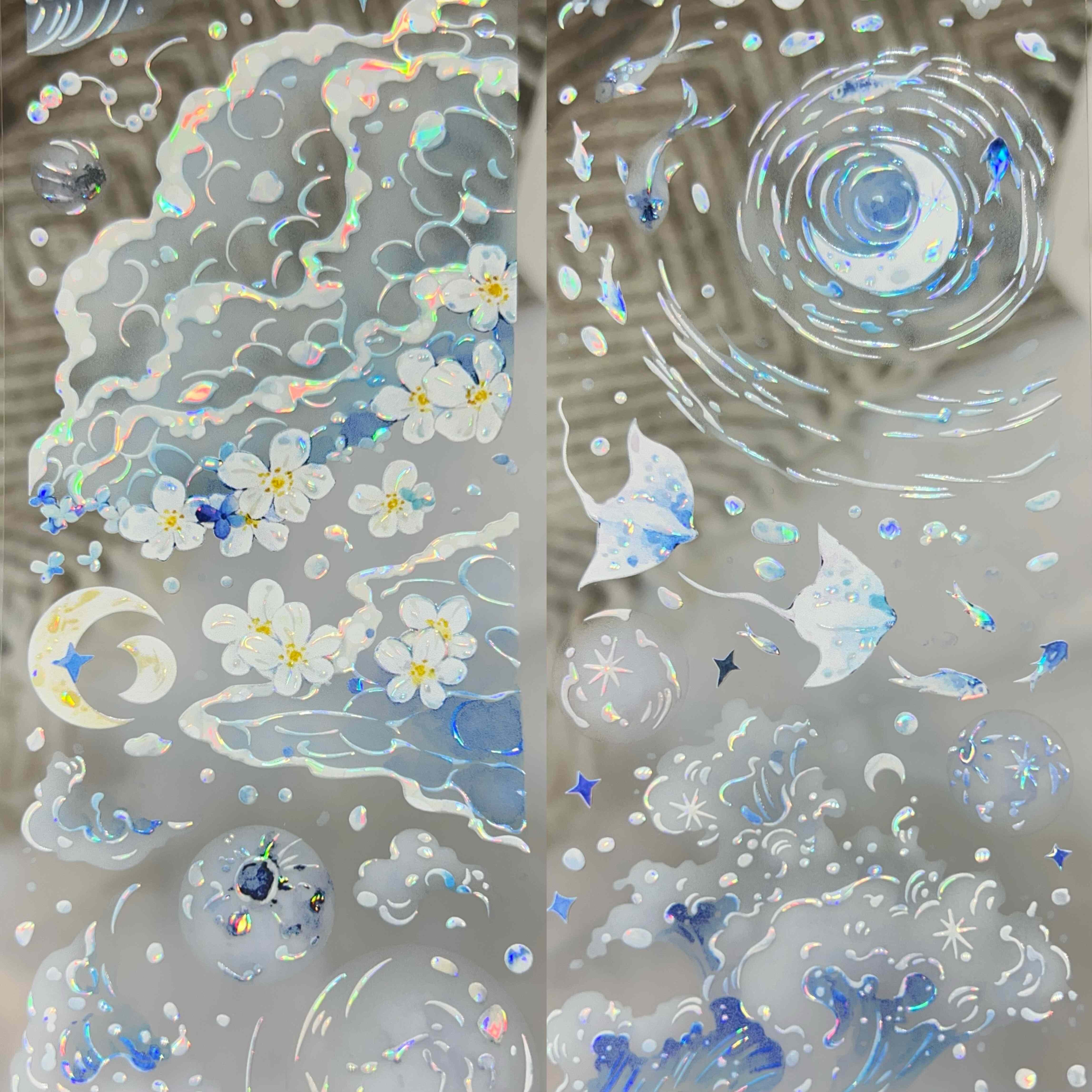 Wines分装 手账胶带月海花眠海浪莹虹初澈透明泡泡模切贴纸卷流麻