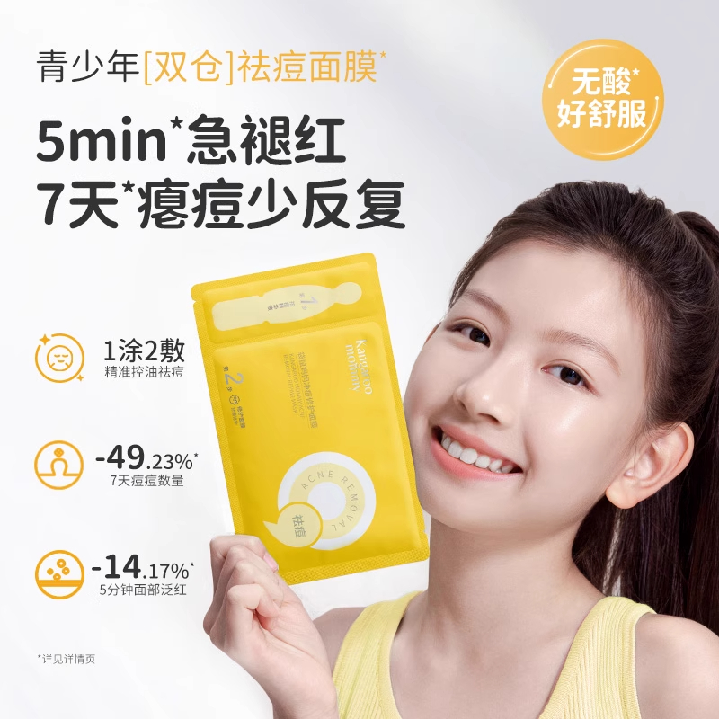袋鼠妈妈青少年面膜保湿 修护秋冬补水男女孩焕亮祛痘学生官方正品
