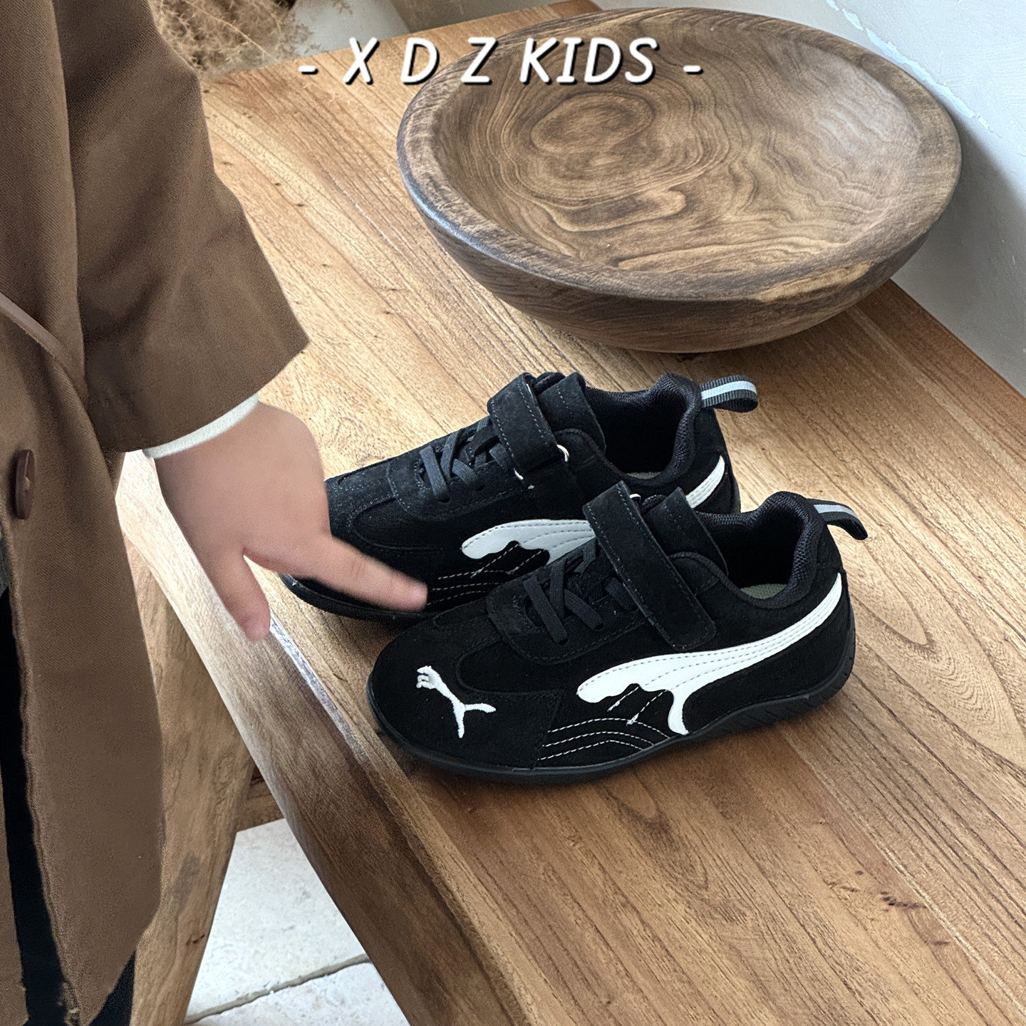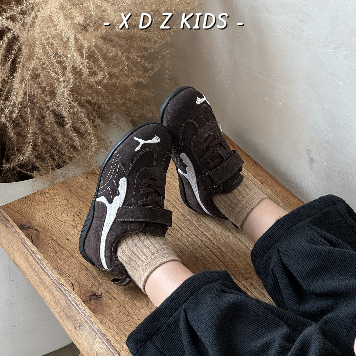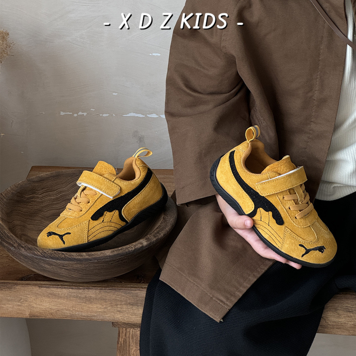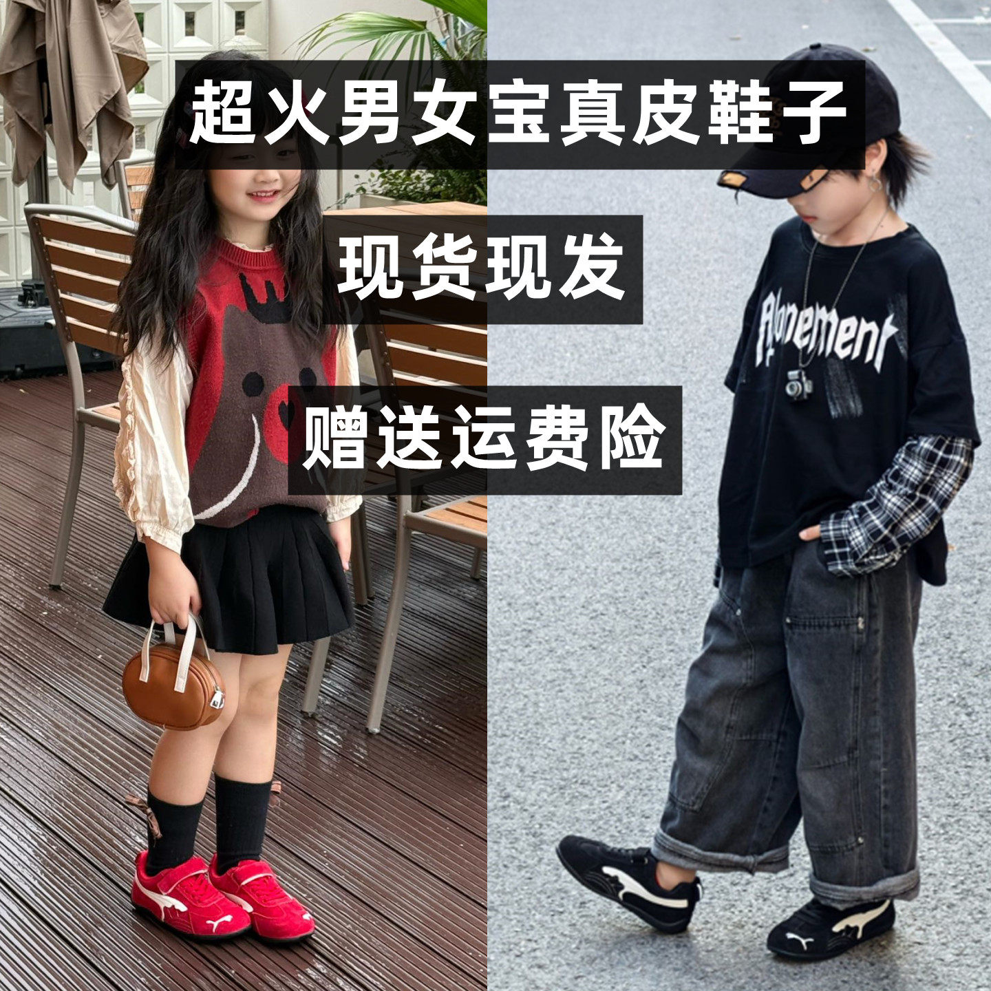 女童运动鞋 2025新款 加绒板鞋 秋冬男童赛车阿甘鞋 红 真皮儿童德训鞋