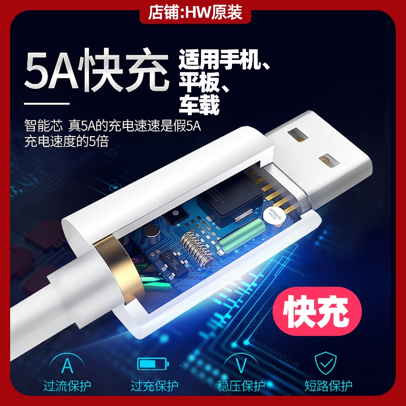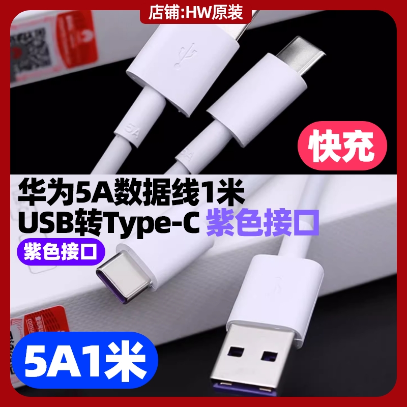 C快充紫色接口车载10V 适用于麦芒30手机数据线原装 快充5A1米充电线USB转Type