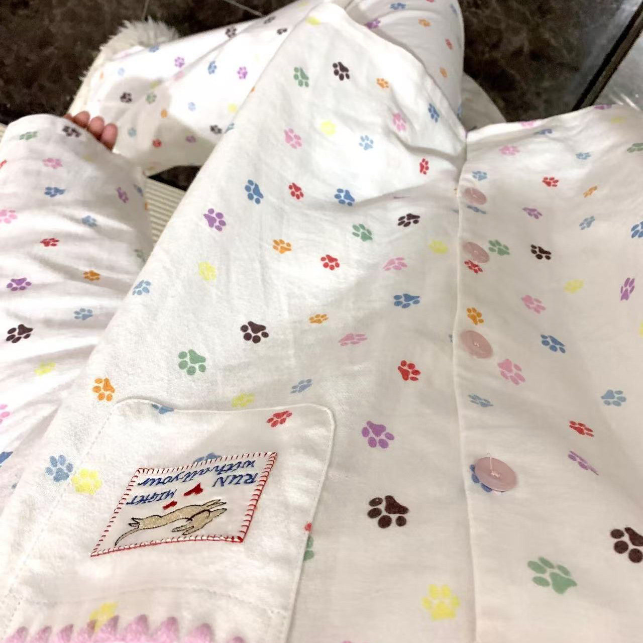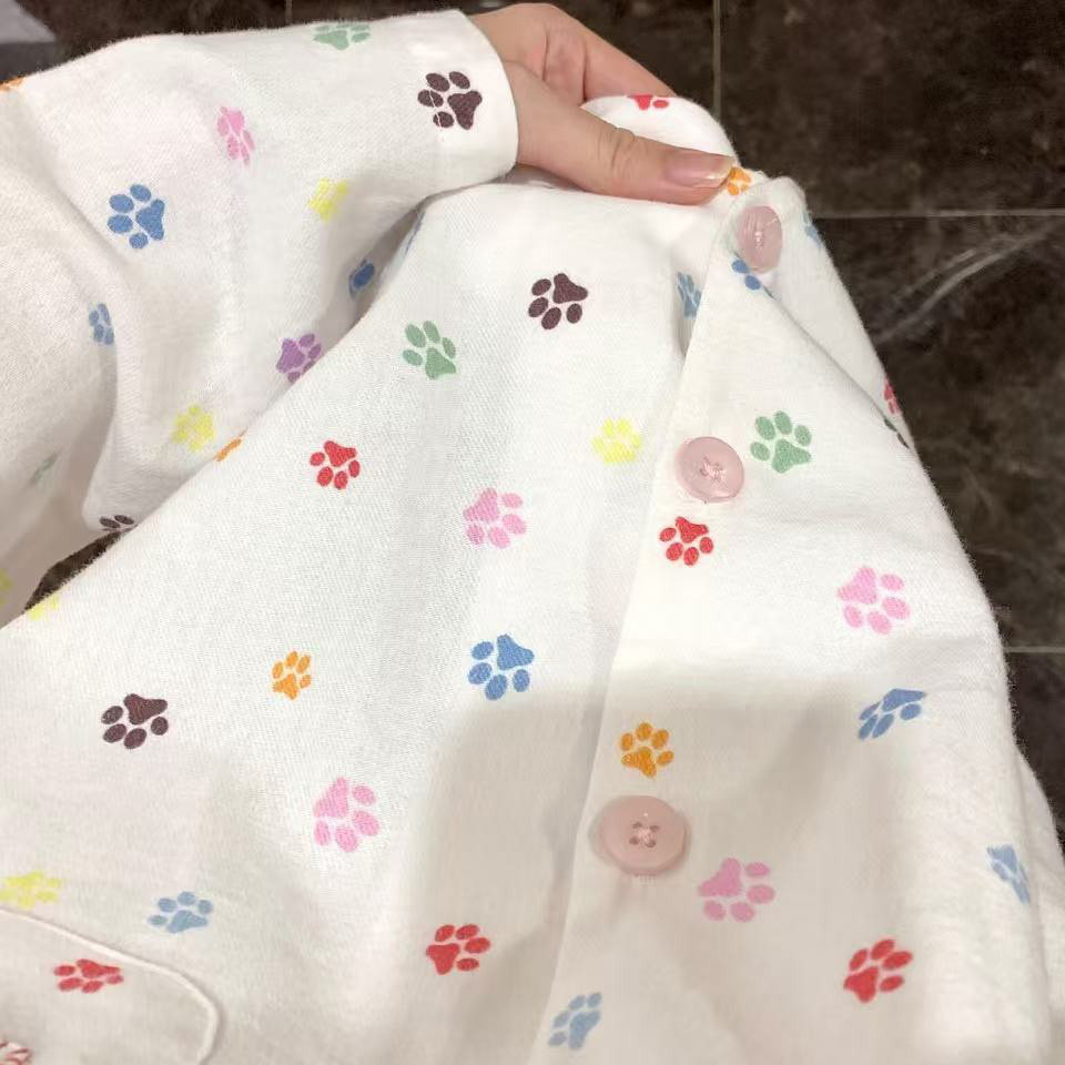 纯棉磨毛可外穿家居服套装 睡衣卡通夏季 彩色爪印长袖 侘町2025新款