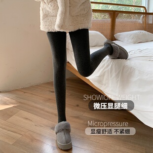外穿打底裤 miu系加绒打底袜薄款 袜女秋冬2025新款 小个子灰色连裤