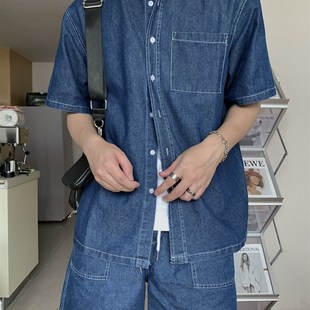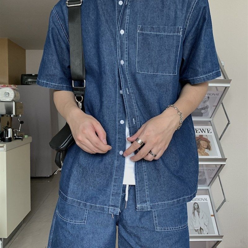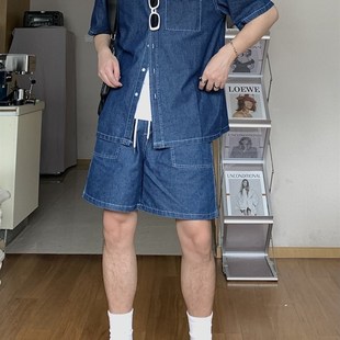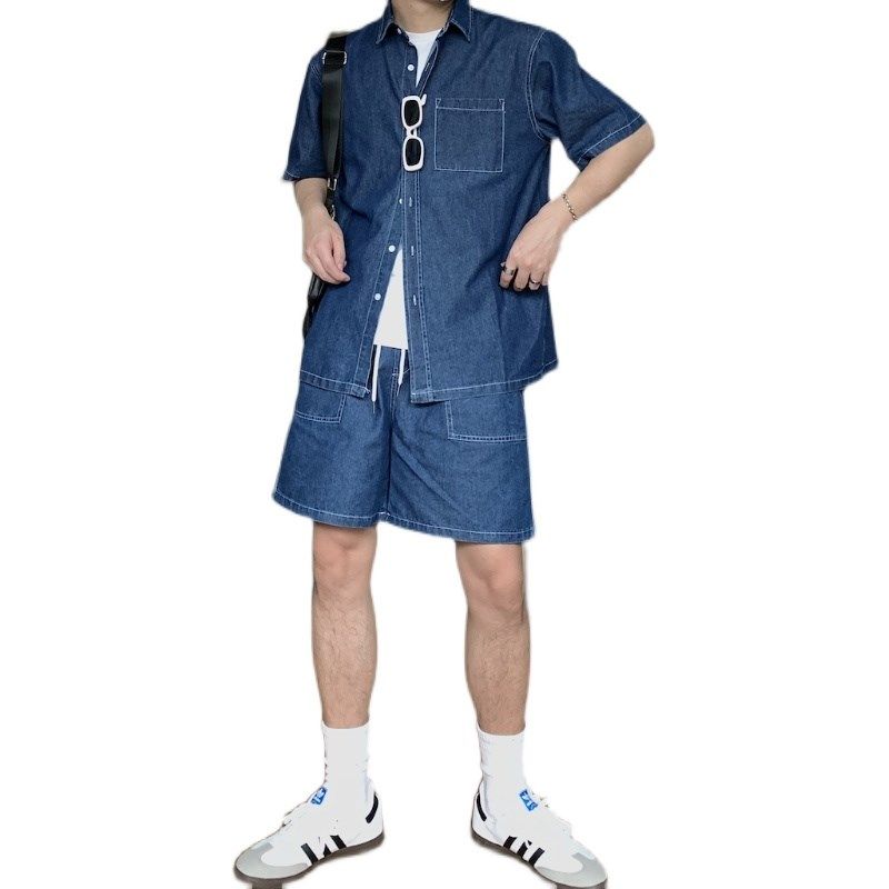 外套牛仔短裤 牛仔衬衫 套装 男夏季 两件套 方人也屹韩版 薄款 短袖