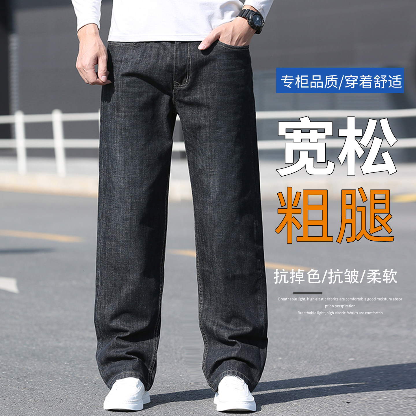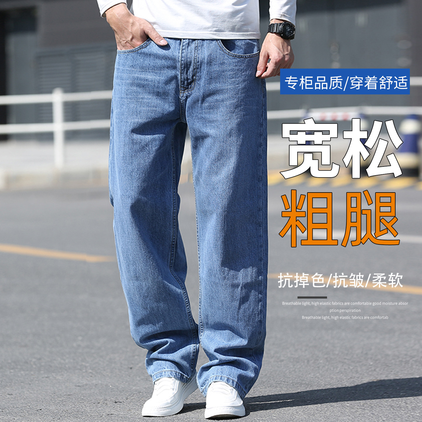 宽松阔腿加大码 高端春秋新款 厚款 牛仔裤 粗腿肥佬YKK拉链 纯棉男士